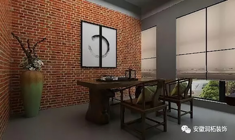 简洁的线条、整面墙体的红砖设计、实木桌椅打造,在中式禅意文化之余,通过空间留白,打造茶余书后的回味无穷。茶叶、书籍、挂画,钟爱的茶具、家具、陈设品,甚至心仪的茶室,连同挚爱的质朴优雅生活方式、平静达观的生活智慧,让空间与内心贯通。