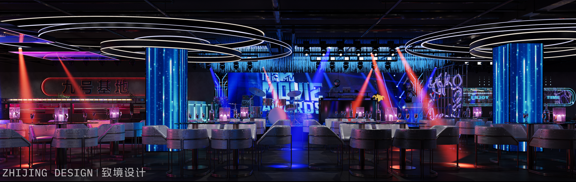九号基地:赛博夜域里,蓝紫霓虹织就的暗调未来